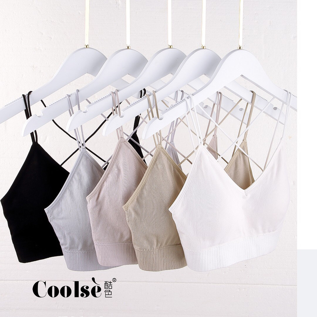 Cool color ladies underwear beauty back bra integrated vest without steel ring girl fixed cup anti-light sling 9078