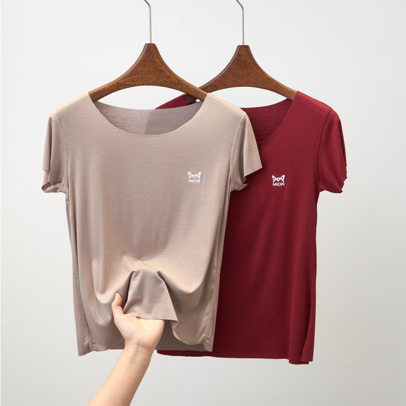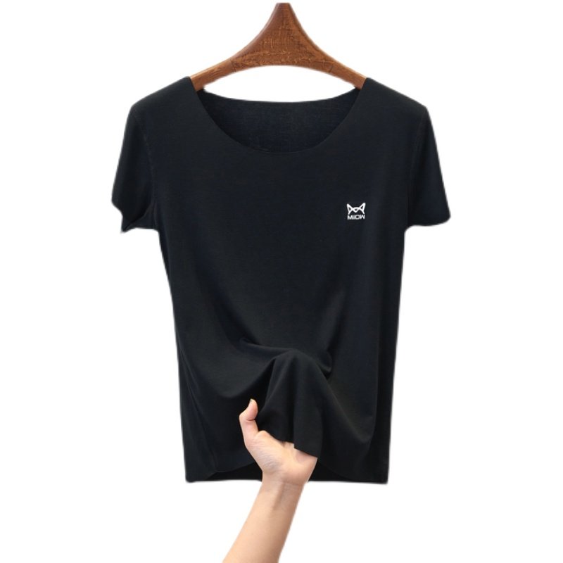 Cat person Modale short sleeve female summer large code No-mark round collar inner lap pure colour cotton beating bottom face mask t-shirt half sleeve blouse-Taobao
