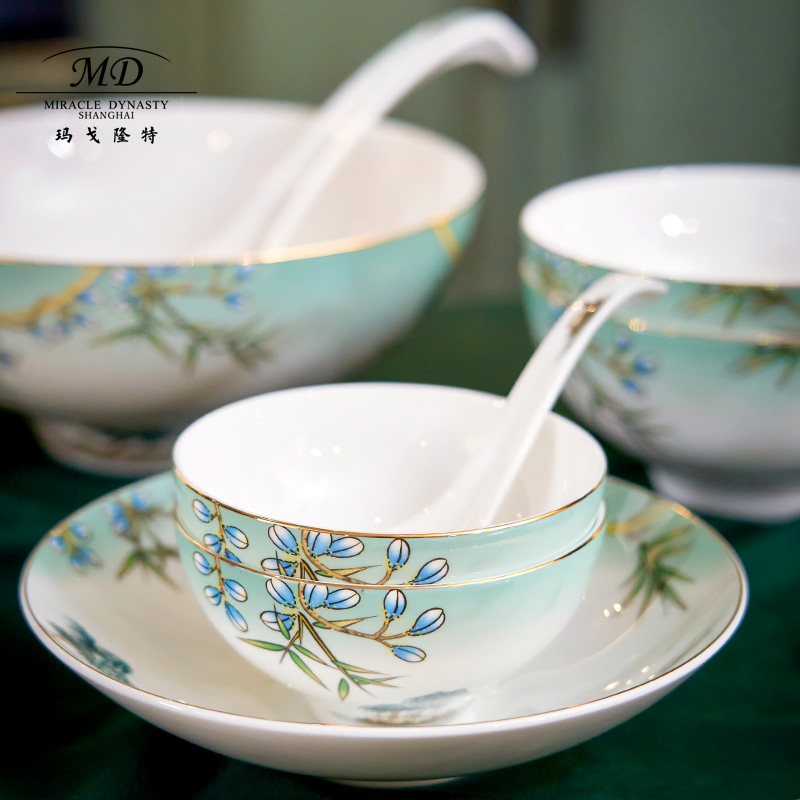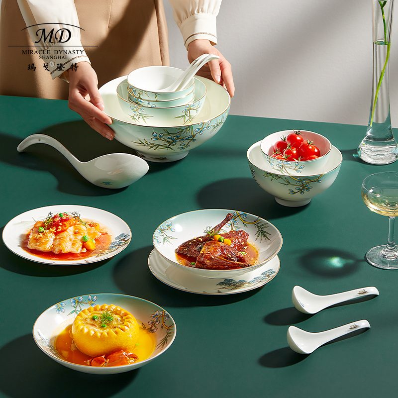 Margolonte West Lake Feast Bone Porcelain Tableware Suit Bowl Home Chinese Creative Prose Free Combination Dress