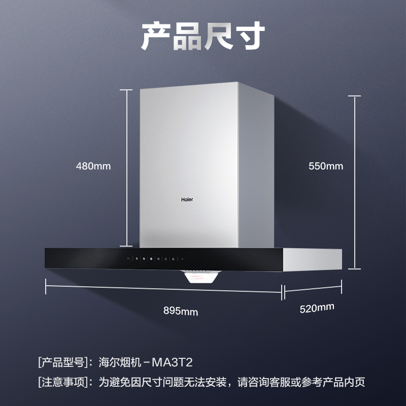 Haier MA3T2 Intelligent cleaning extractor hood small home kitchen large suction Eurostyle official flagship store