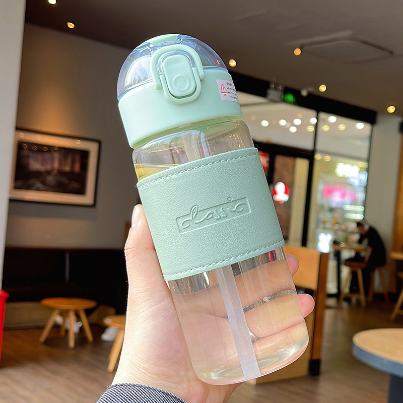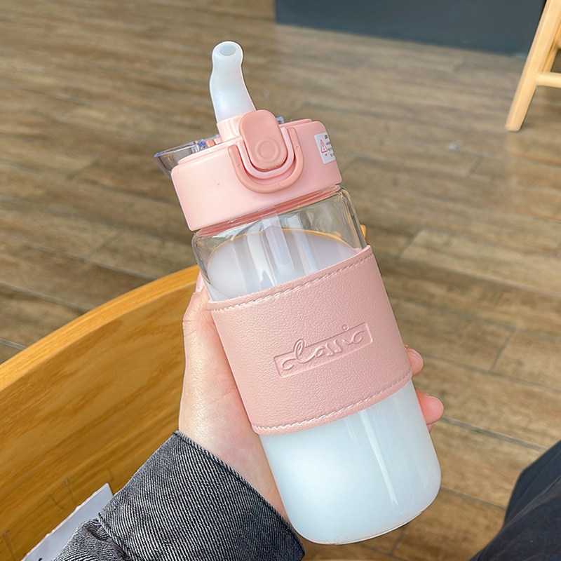 Glass straw cup female high face value maternal mugs brief frescoes lovers office water glass large capacity