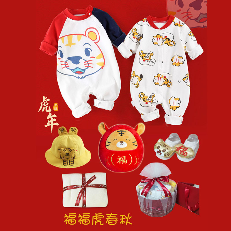 Tiger year baby gift box newborn full moon 100 days old sends gift pure cotton cover box Spring and summer upscale men and women