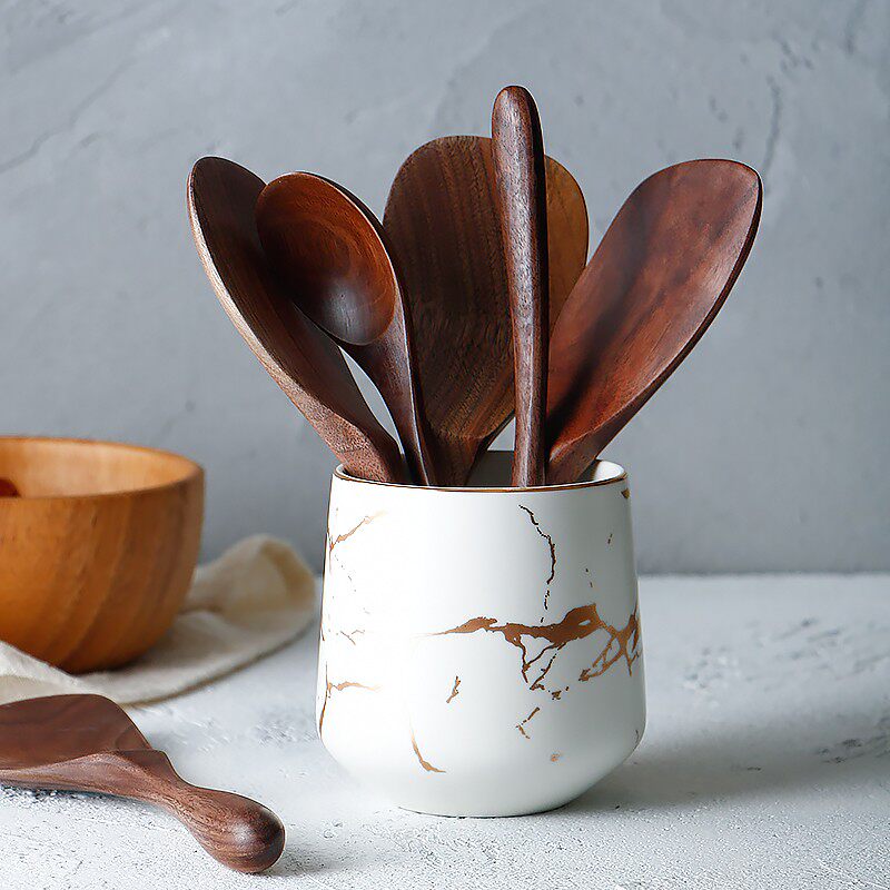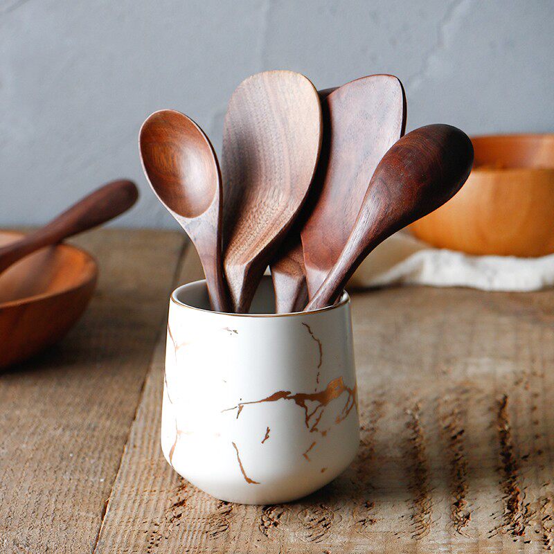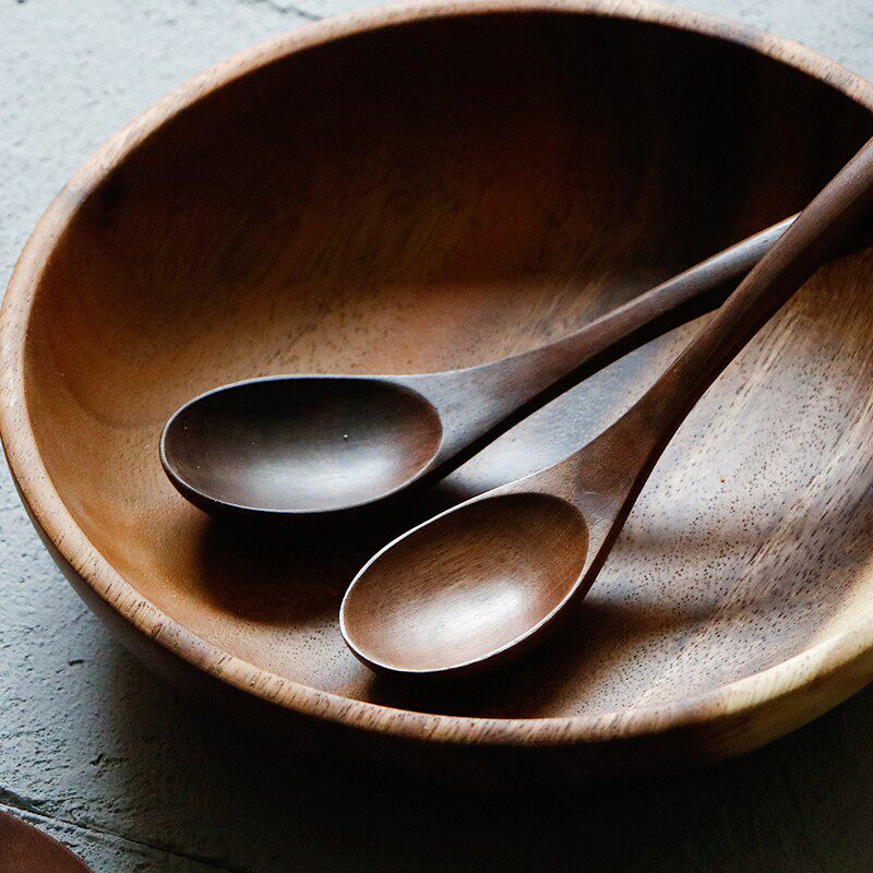 Japanese-style red wooden spoon household environmentally friendly lacquer rice shovel black walnut without sticky rice left rice spoon