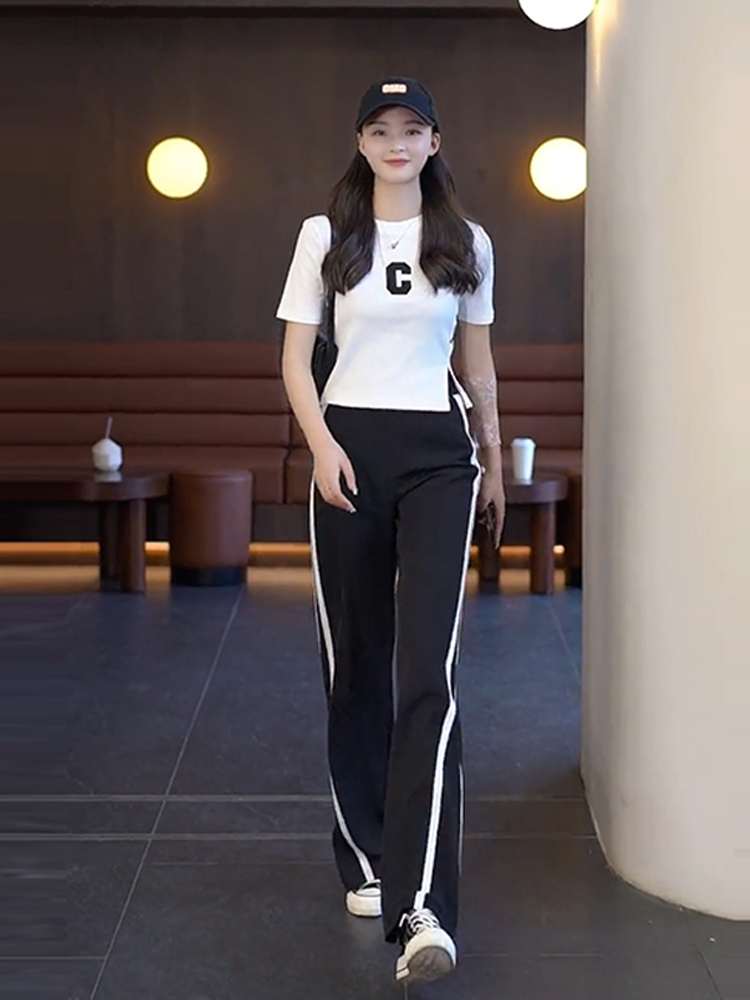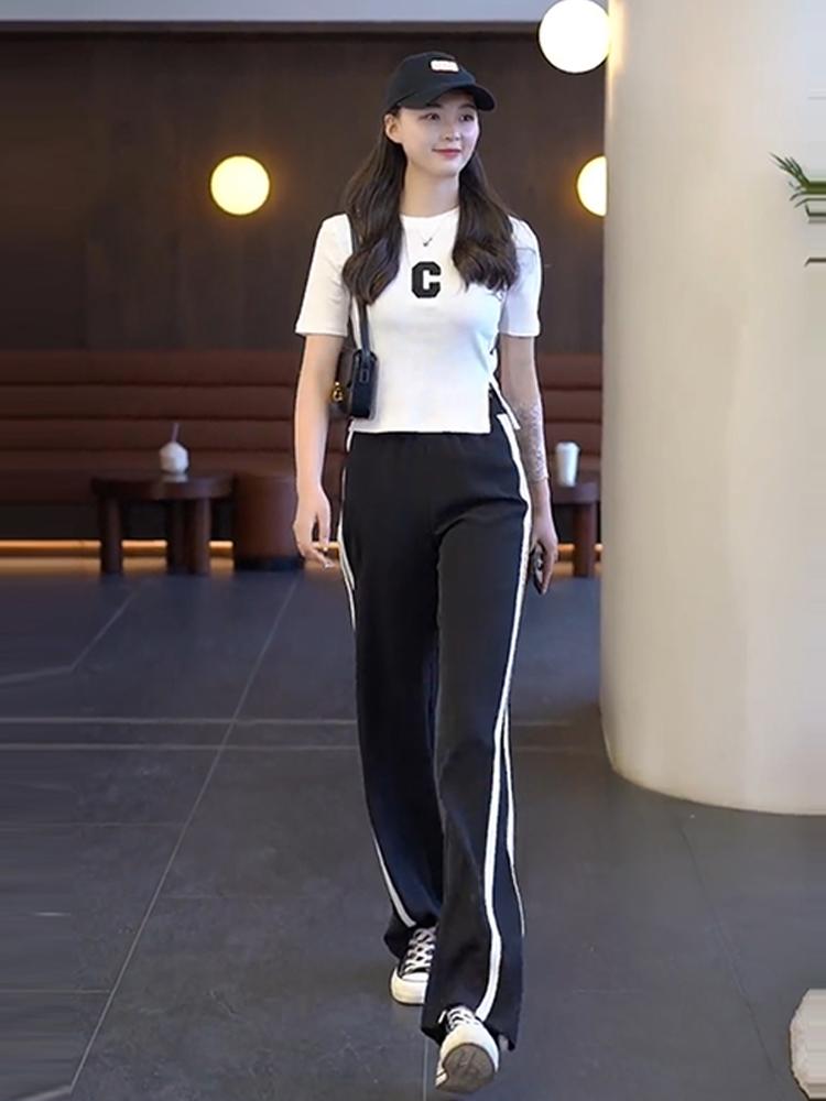 Black Casual Fashion Broadlegged Pants Suit Women Han Edition Tug Pants Two Sets Fashion Minus Age Foreign Pie Spring Summer women's clothing
