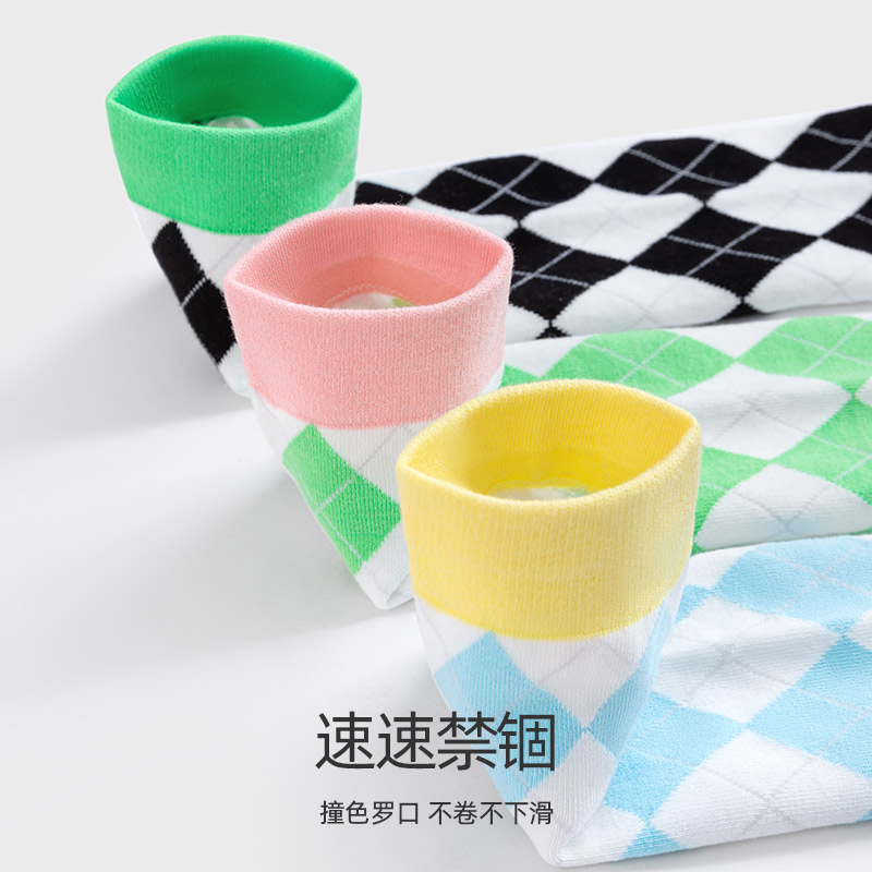 Crab secret pressure skinny leg calf socks women spring summer JK socks academy style diamond plaid long barrel retro middle socks