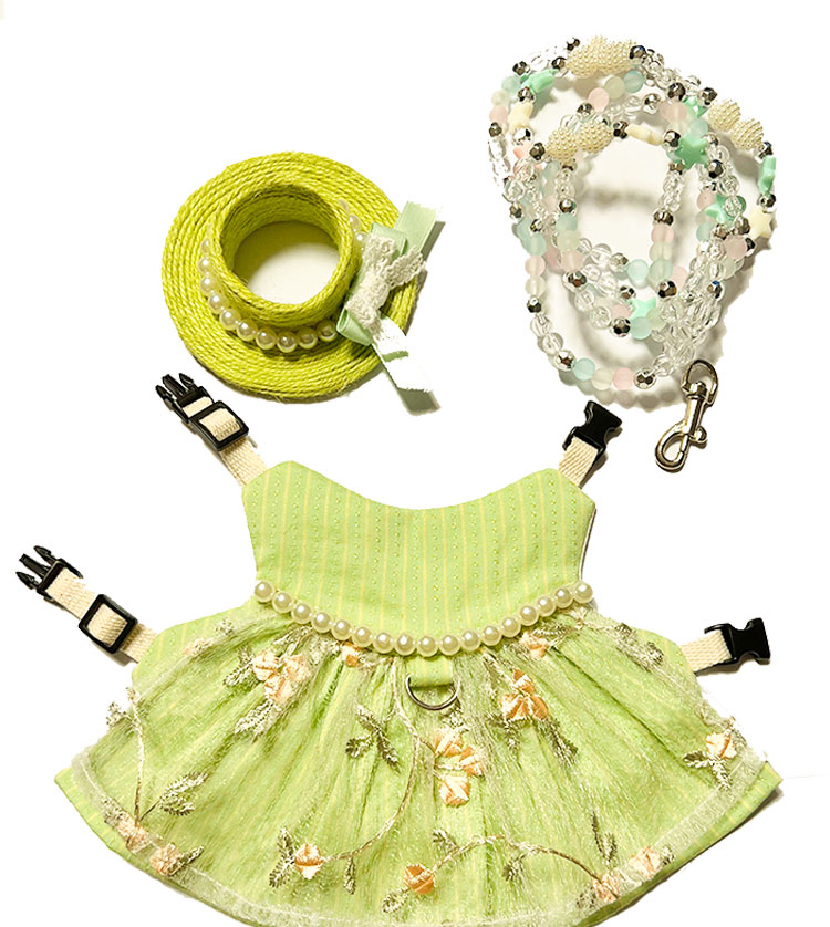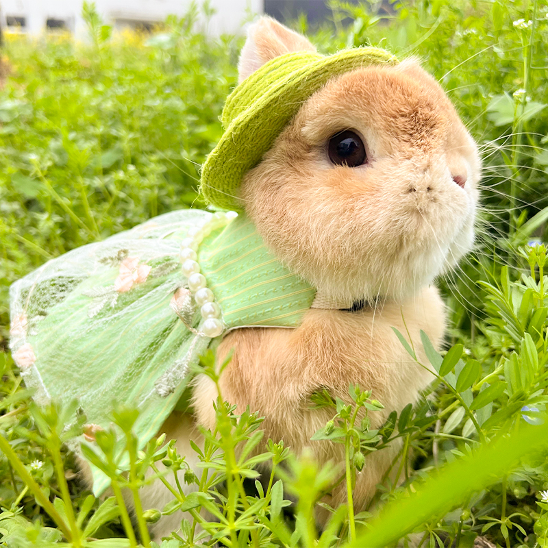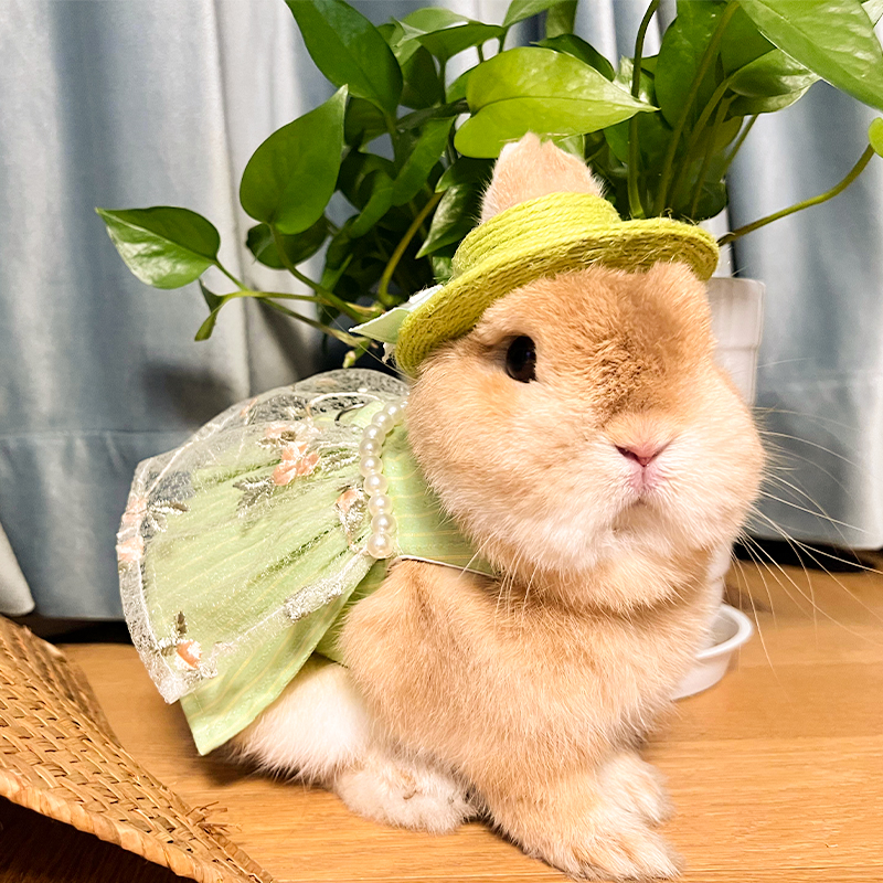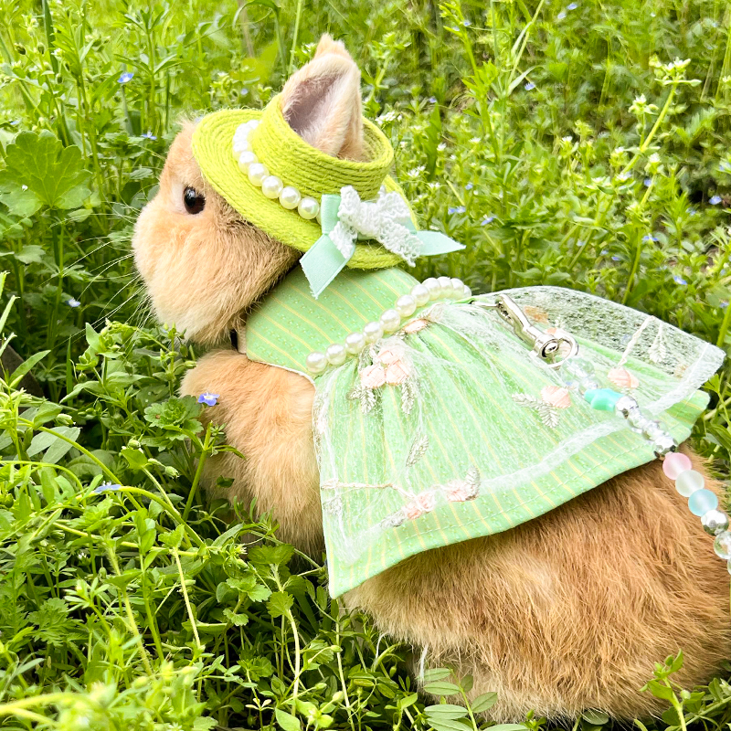 Pet Rabbit Cooping Rabbit Dwarf Rabbit Spring Out Green Retro Princess Dresses Traction Rope Cat Cat Clothes