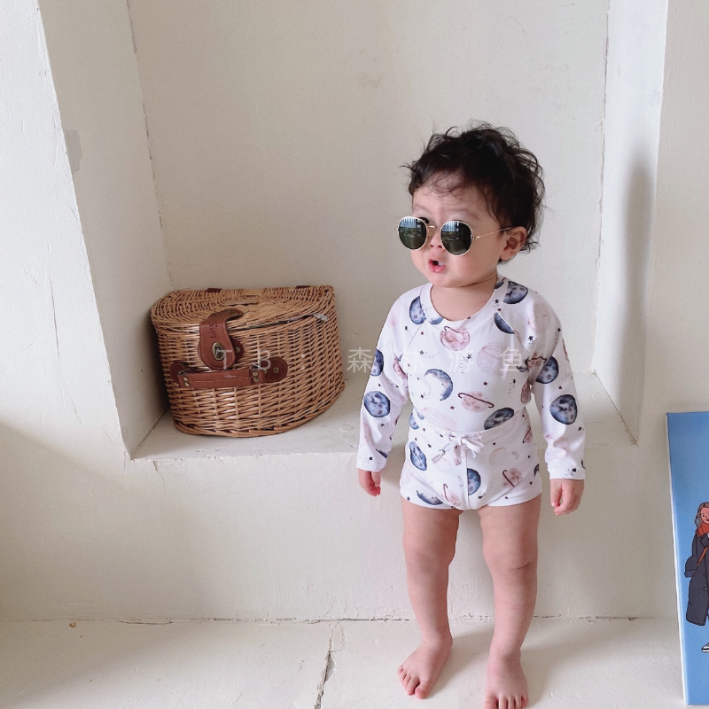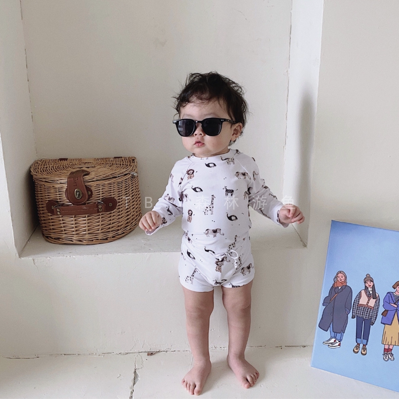 Swimming fish custom Australia Bencer Hazelnut boy baby long-sleeved swimsuit two-piece suit vacation swimming