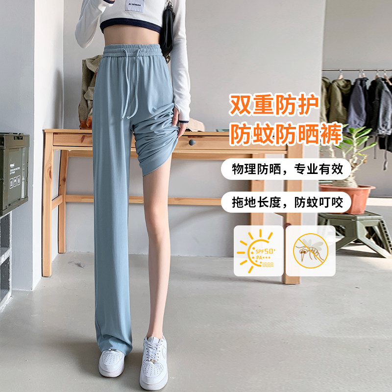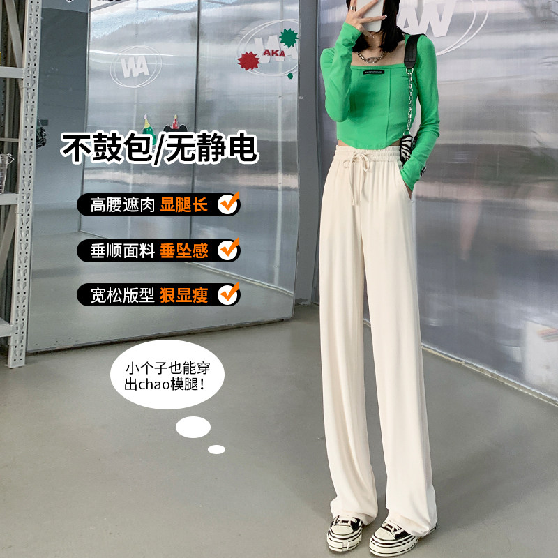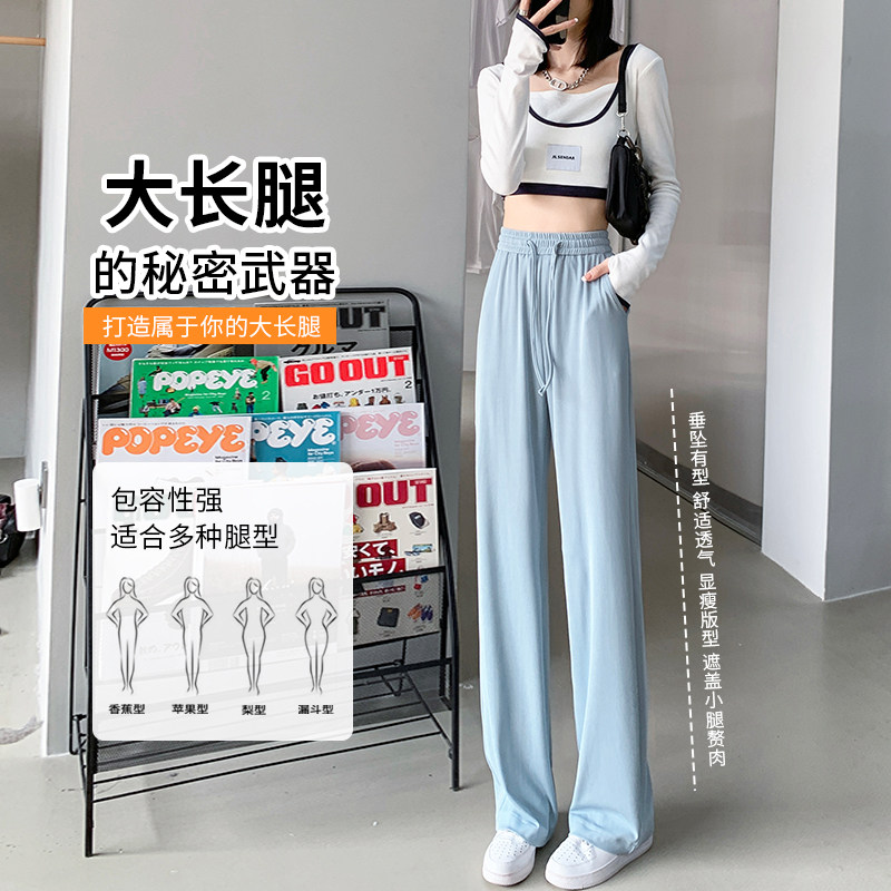 Ice Silk Broadlegged Pants Woman Spring Summer Thin with high waist pituality 2022 new tug trousers casual display slim straight pants