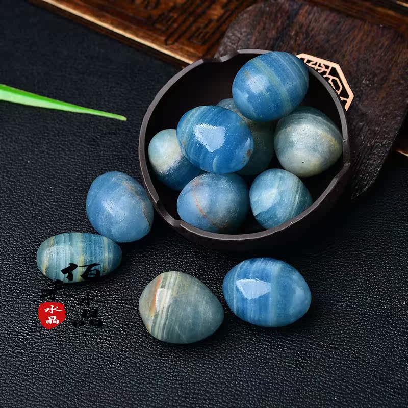 Natural Blue Lux crystal original stone ornament egg-shaped handle piece fish tank flower pot landscaping decorative ore specimen