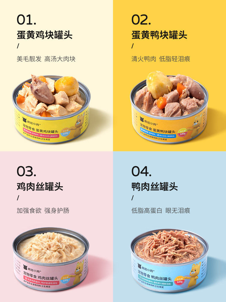 Egg yolk chicken nuggets 100g*6 cans egg yolk duck nuggets 100g*6 cans shredded chicken 100g*6 cans shredded duck 100g*6 cans
