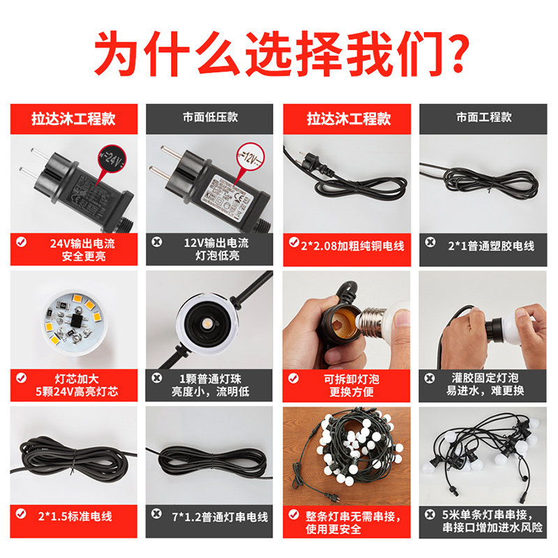 Outdoor Light String LED Bulb Lantern Tree Light Balcony Outdoor Waterproof Shop Festival Camping Atmosphere Light String Decoration