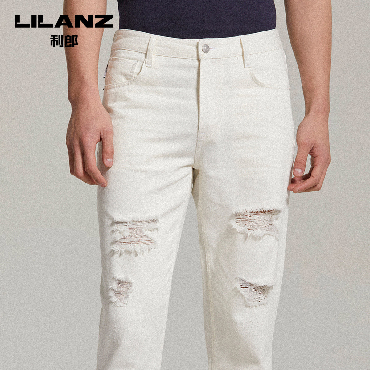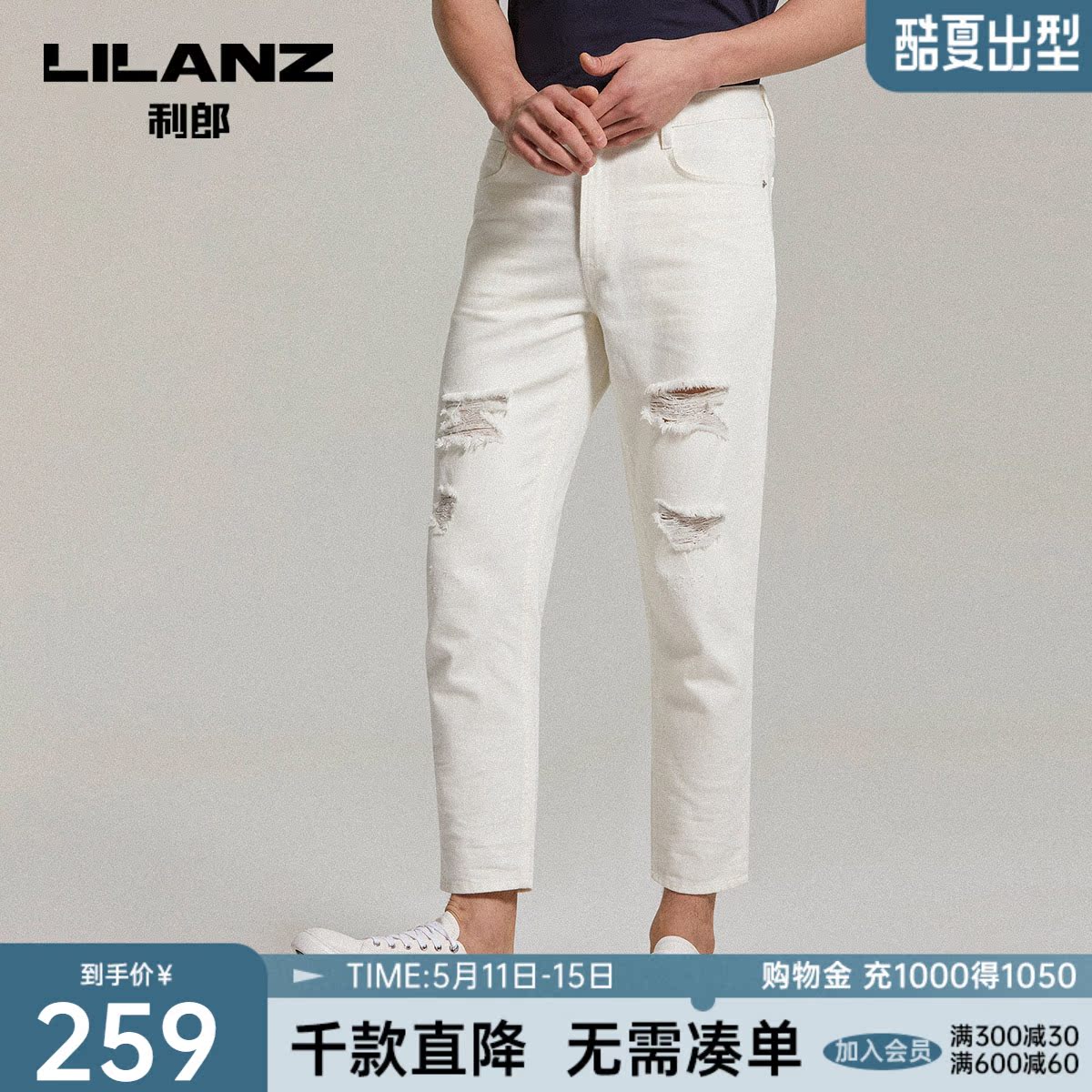 (Three Defense Easy to handle) Liliang white 90% Jeans Son's Broken Hole Easy 2022 Summer Thin Section
