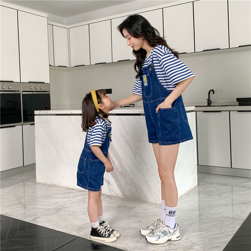 Not the same pro-zipload 2022 Summer laughs in Korean version Cowboy Baby Bag Pants Mother woman Loaded Mother-daughter Bottling