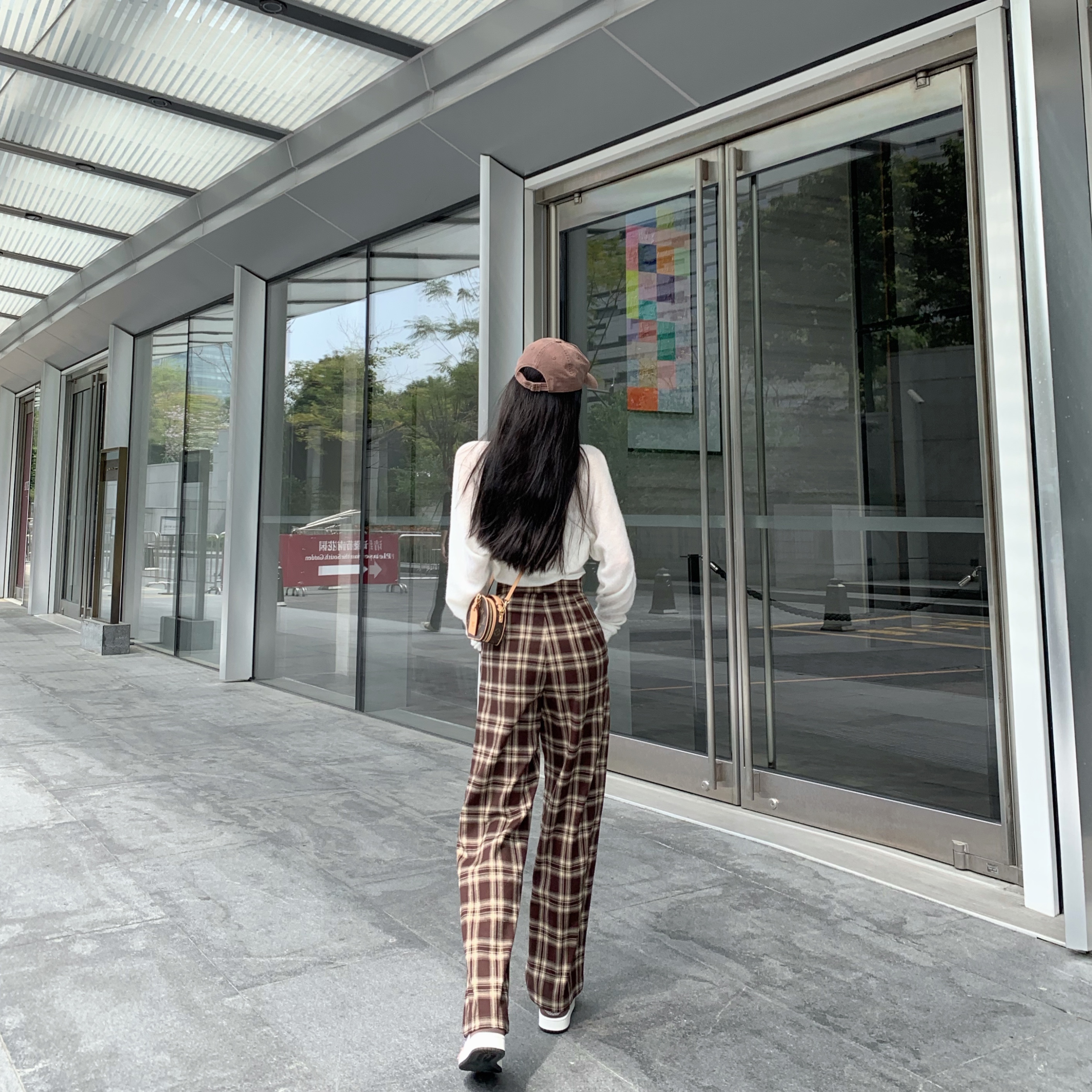 JoyingFeng (Long-leg Ouni) high-waist slim plaid pants women's summer casual loose straight-leg wide-leg pants