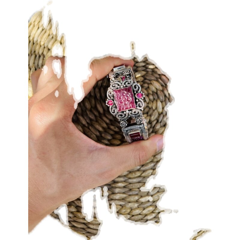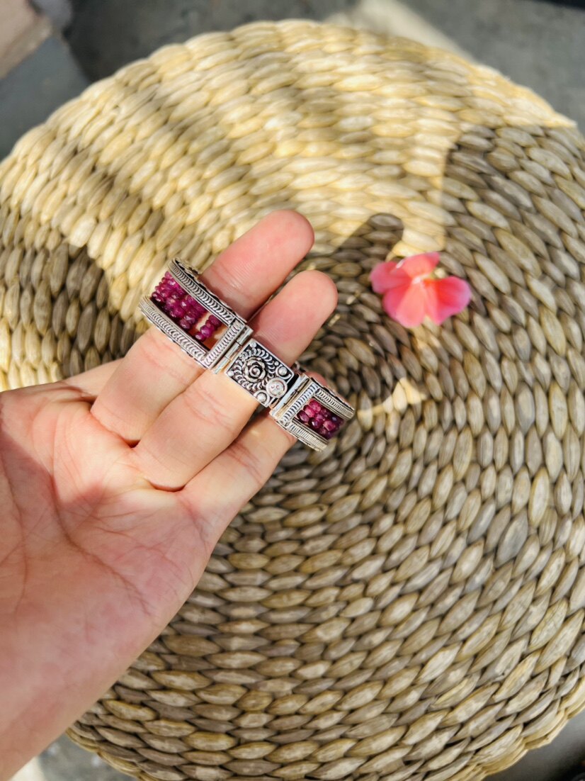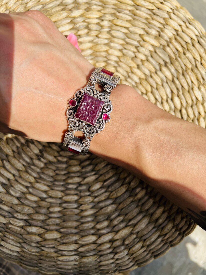 Black hand haute couture handmade silver mandala element antique ruby bracelet orphan