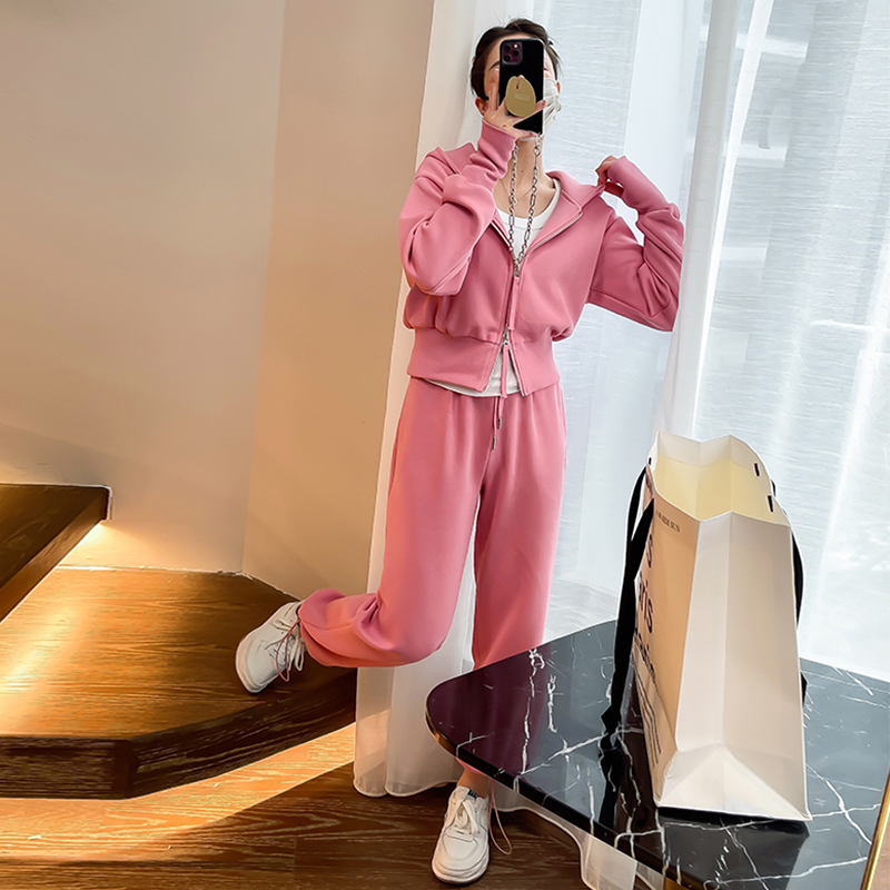 Grey Casual Suit Women Fashion Foreign Pie 2022 Springnet Red Trendy Tandem Hat Sportswear Wear two sets