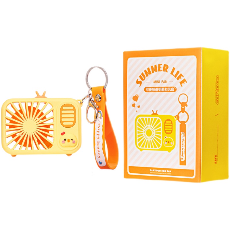 Cute keychain small fan USB charging student cute cartoon girl heart portable mini charging fan