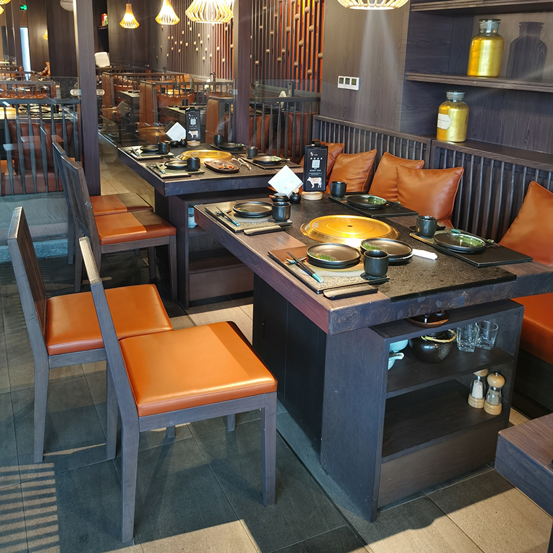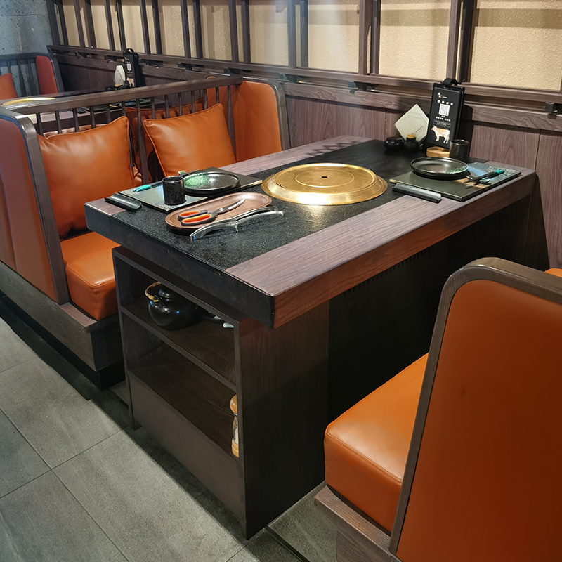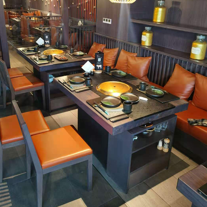 Marble smokeless barbecue table commercial barbecue hot pot table carbon barbecue barbecue table barbecue shop table and chair combination