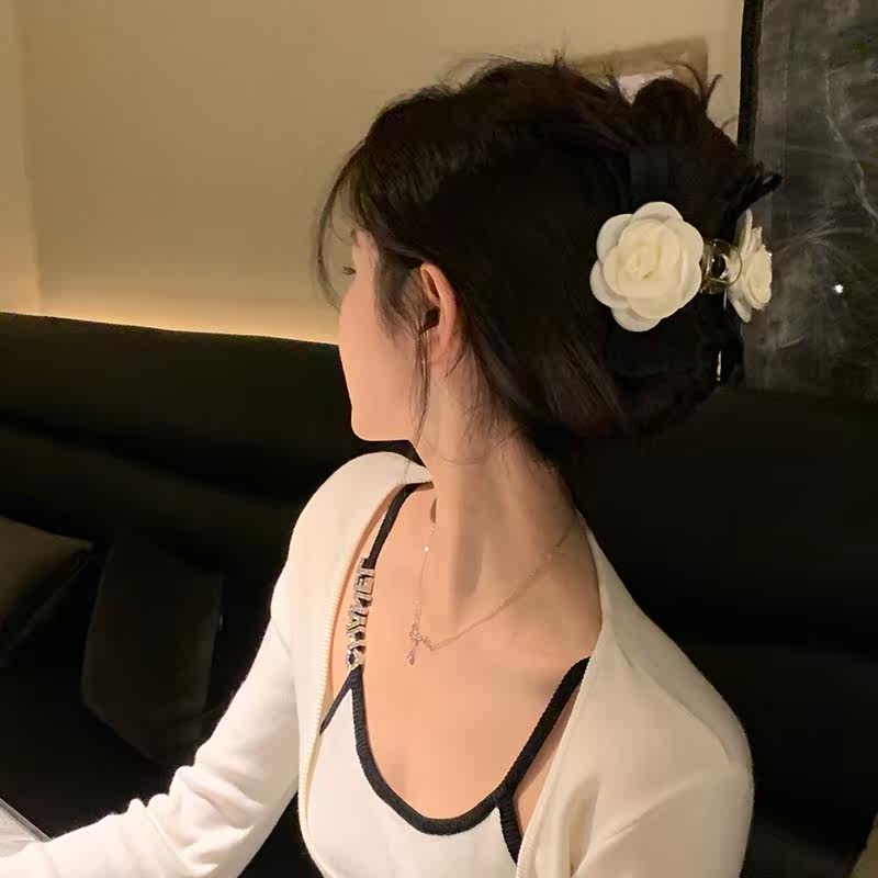 Korean net red camellia clip female French high-end hair clip large shark clip hair clip back head hair clip tide