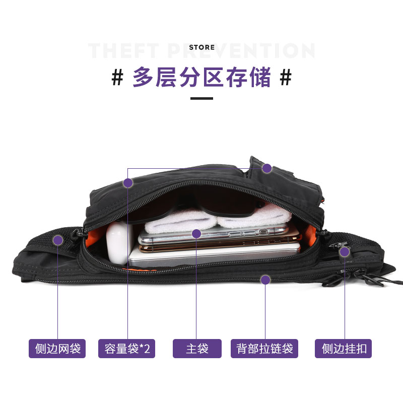 Hong Kong I Tgreg waist bag men's casual one-shoulder messenger bag multi-functional fashion solid color chest bag sports small backpack