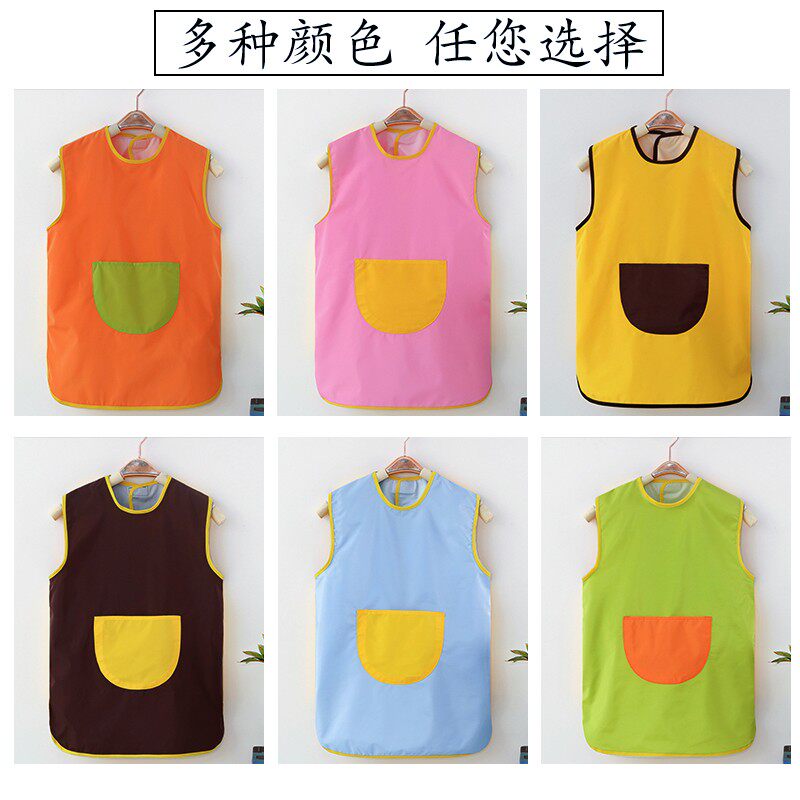 Children drawing hood Customized logo Summer sleeveless anti-dress Waterproof Apron Kindergarten Baby Eat Around Pocket