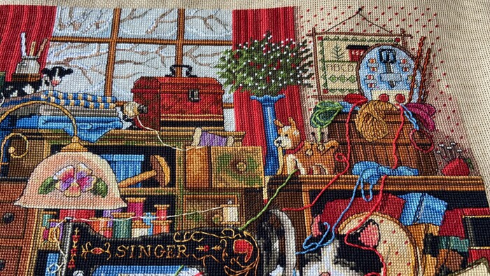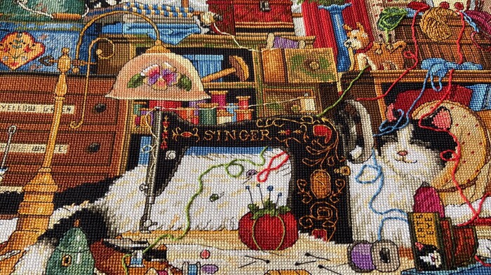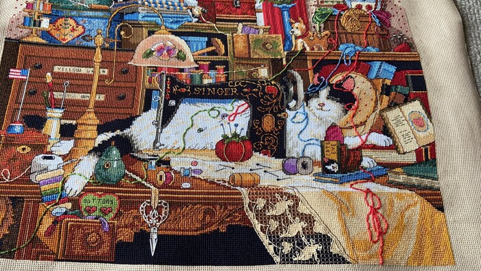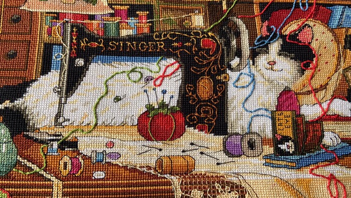 Spot US Imports DIM Cross embroidered 03884 line embroidered embroidered kitty living-room dining room Dining Hall Sewing