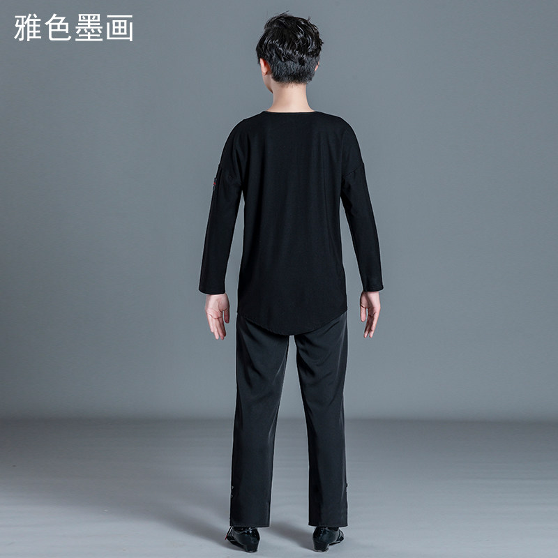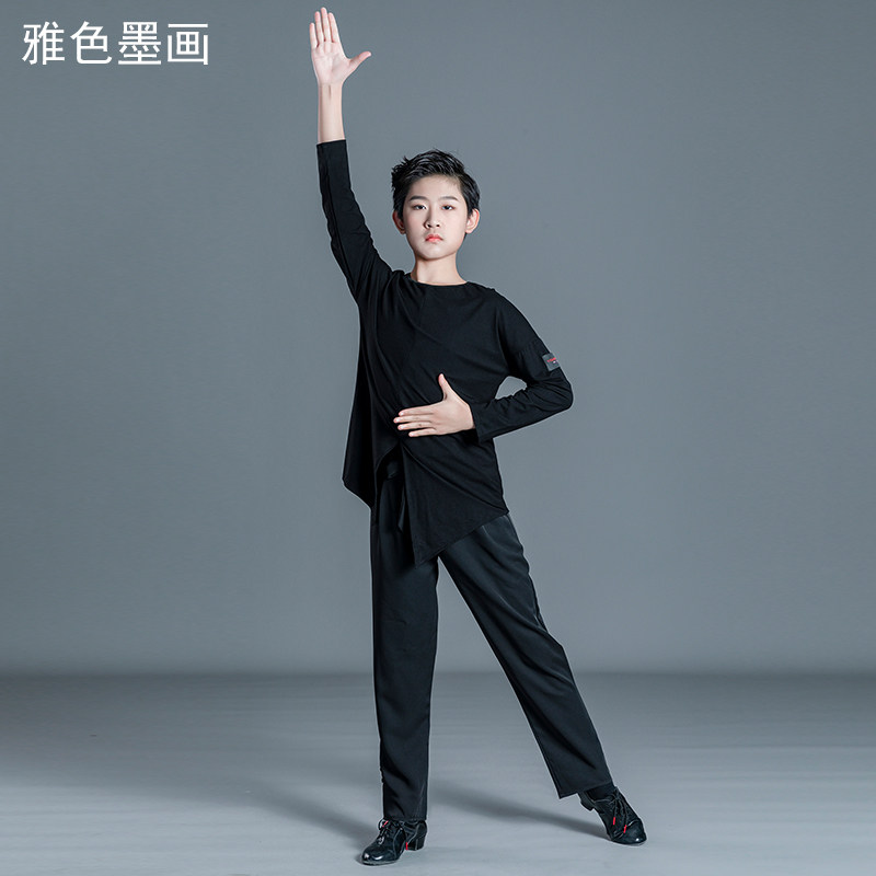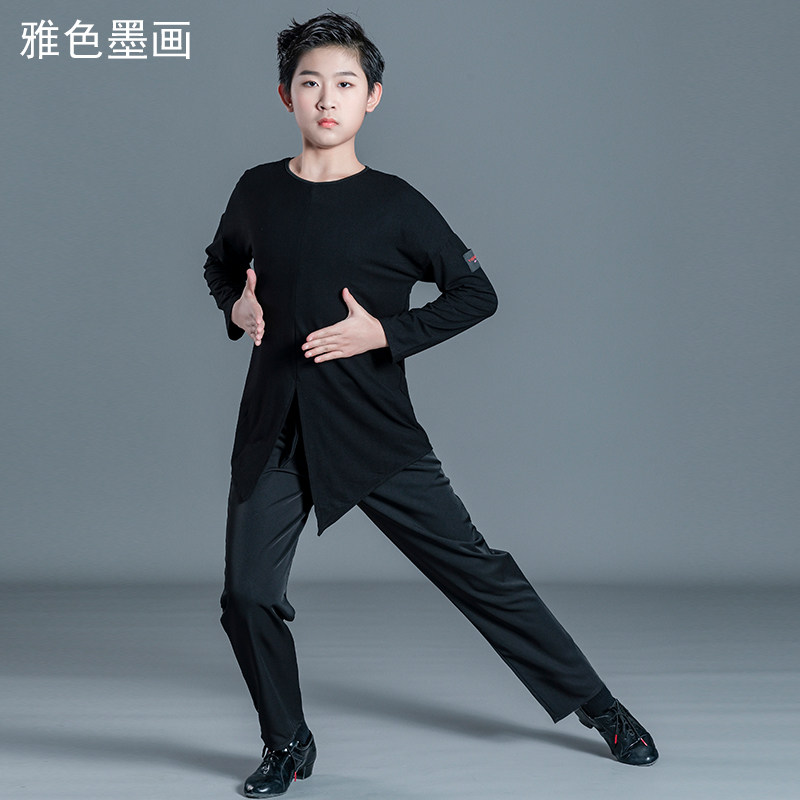 Autumn and winter boys Latin dance practice clothes top boys performance training clothes long-sleeved loose children's verification test clothes