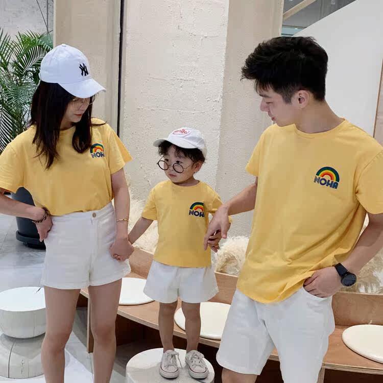 Grape seaside holiday pro-son dress with new Chains Chains overfire mother and daughter dress pure cotton Rainbow short sleeve y