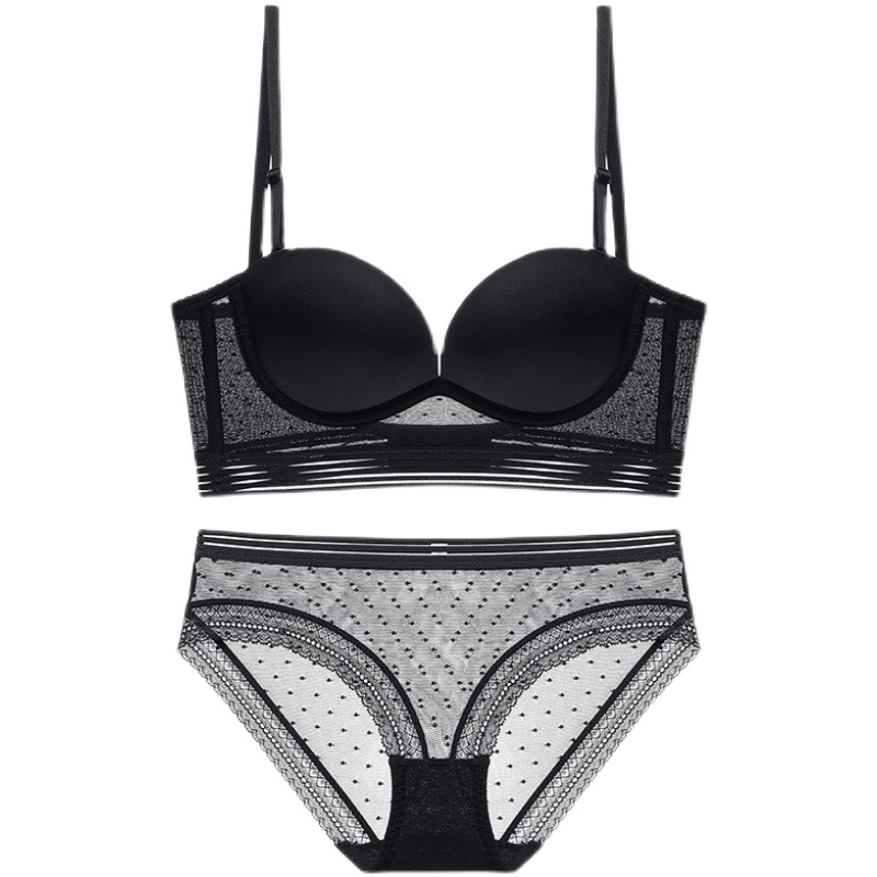 Sexy U-shaped beauty back underwear summer thin large backless dress wedding dress deep V gathered bra set half cup bra