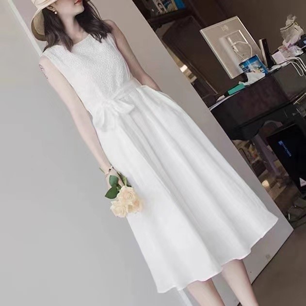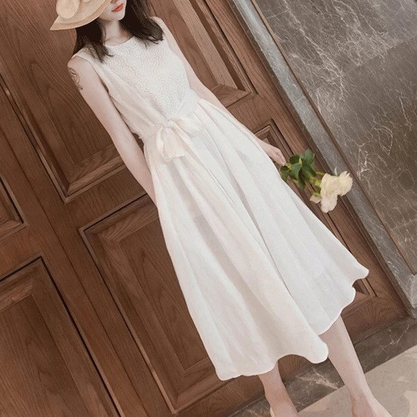French high - grade lace splice a - letter skirt lady 2022 summer new cashew snow spinning vest hanging dress