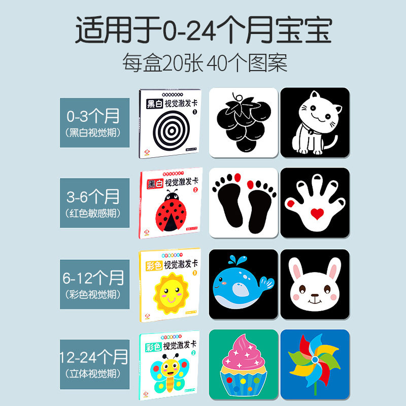 Full set of visual thinking training cards (0-24 months) Colour (12-24 months Cognitive Expansion period) Colour (6-12-month color enhancement period) Black and white (0-3 months