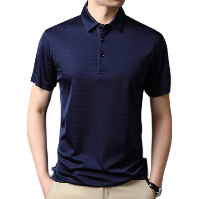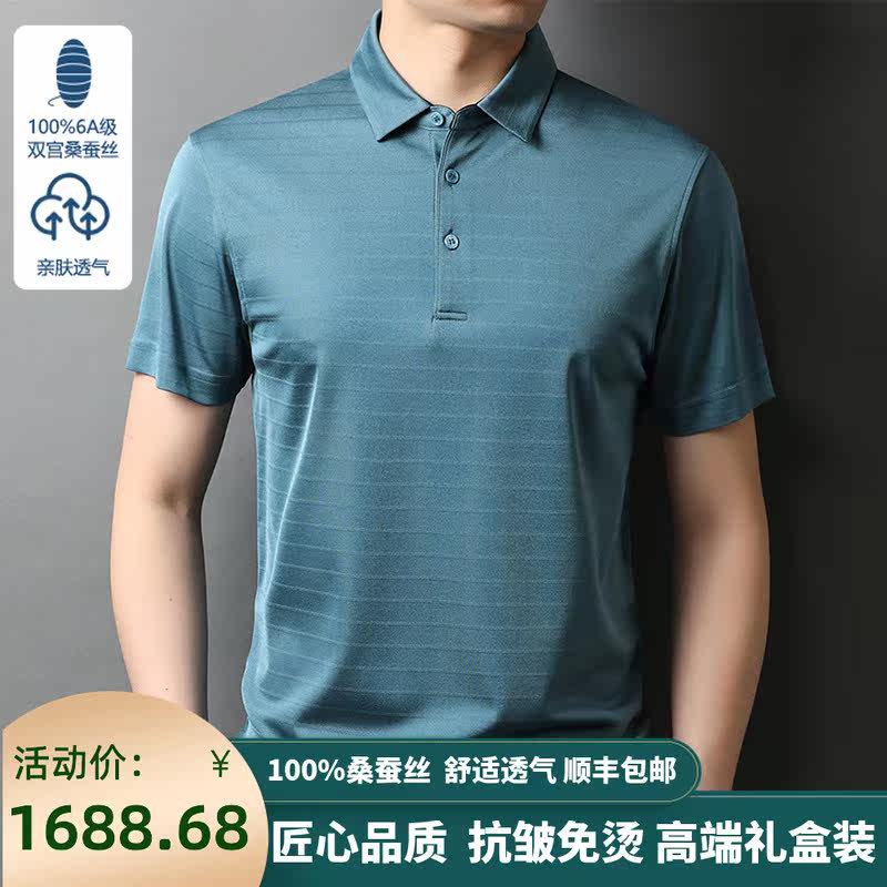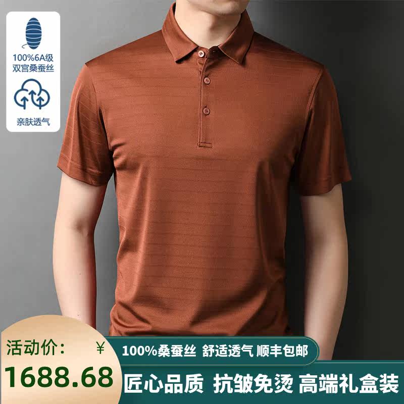 Ordos production 2022 upscale 100 mulberry silkworm short sleeve T-shirt male summer middle-aged business ice silk cool POLO shirt