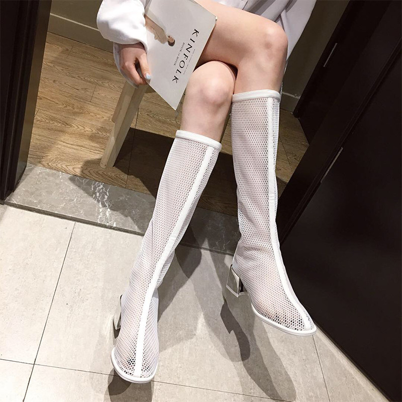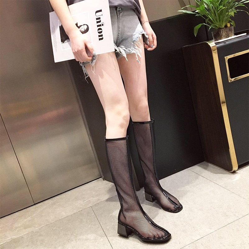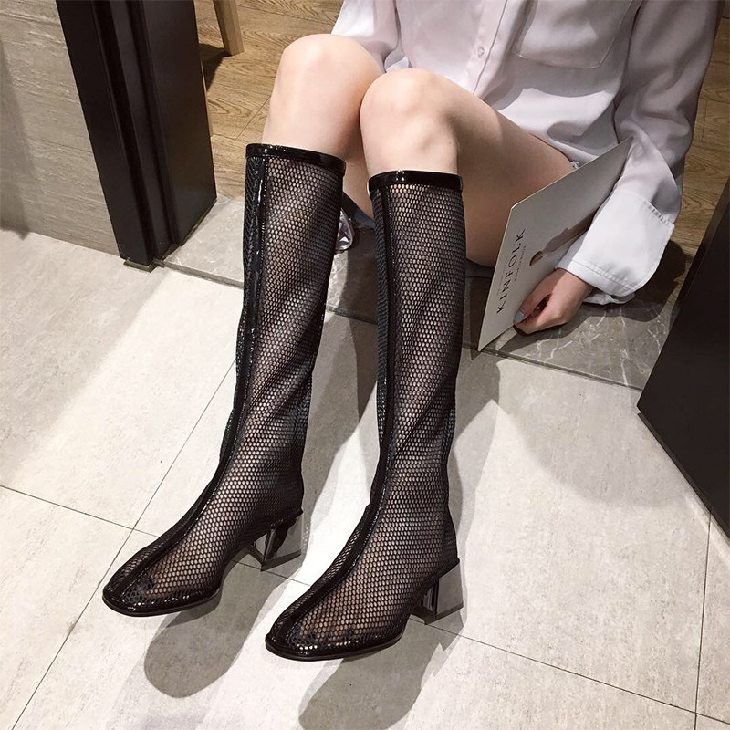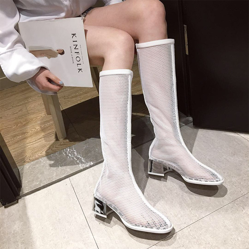 2022 Summer new thin section High heel mesh yarn hollowed-out long cylinder boots female breathable coarse heel high cylinder long boots cool boots