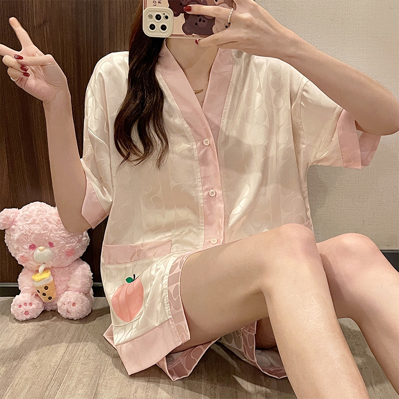 The sleepy women ice wire summer thin 2022 new honey peach sweet costume two sets of home suit