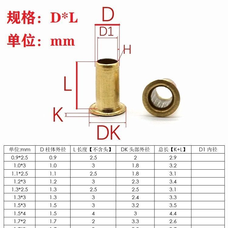 Brass hollow rivet bronze eye button hole 0 9M1 1M1 2M1 3M1 5M2 5M3M4M56