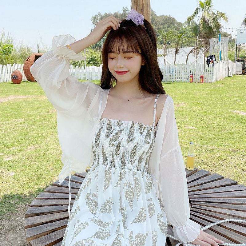 Summer outer wear small shawl chiffon shirt with suspender skirt short sun protection clothing female cardigan top thin coat female