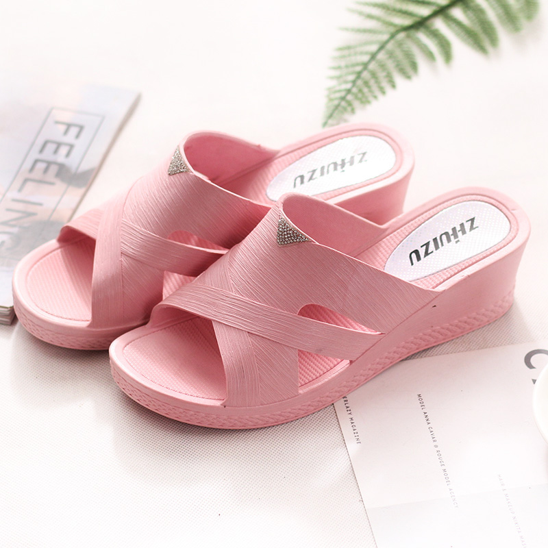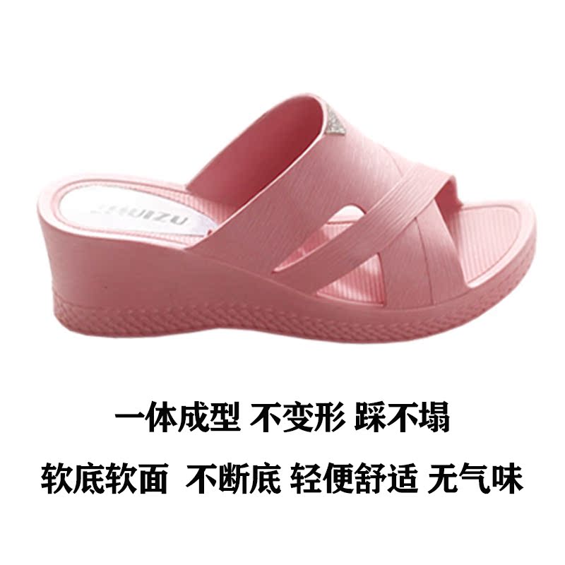 Cool slippers female summer high heel Indoor outwear High feeling light home Use non-slip bathroom thick bottom heightening Shoe Briefs