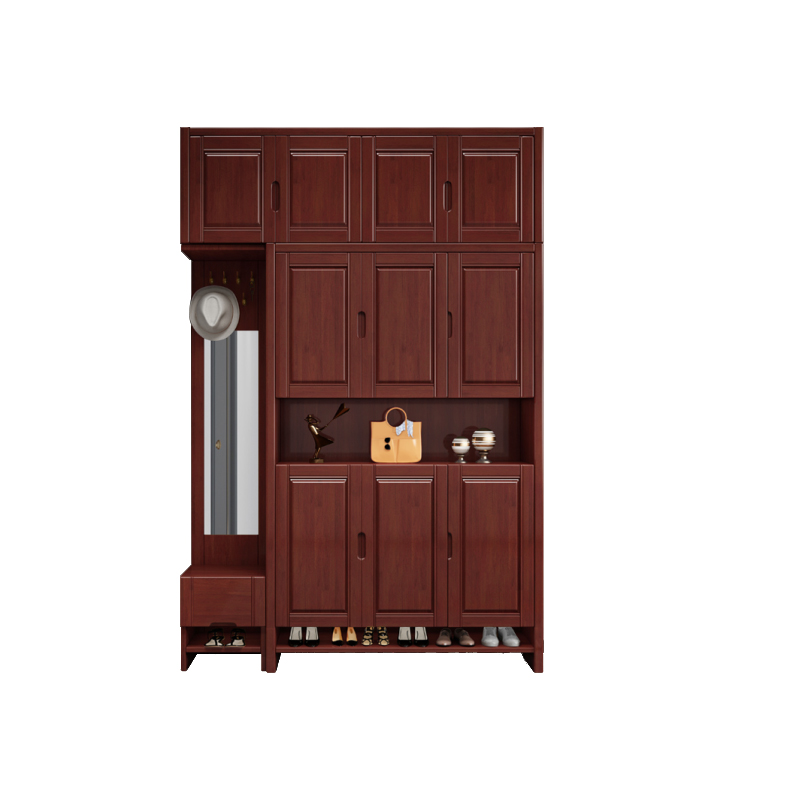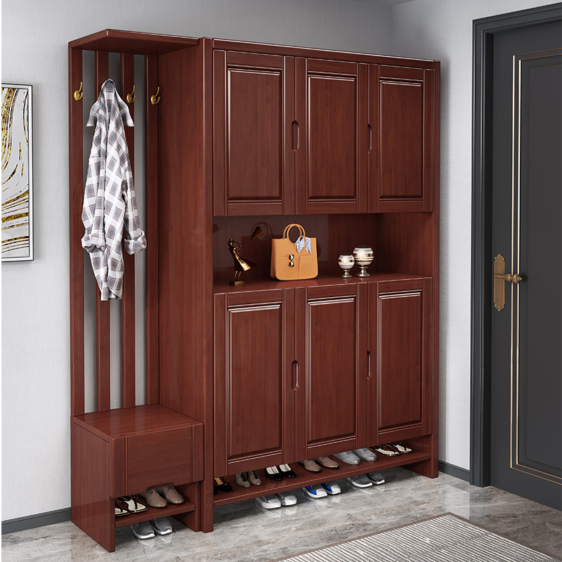Full solid wood shoe cabinet with top cabinet mirror partition Xuan guan integrated cabinet leaning against wall into door clothes hat rack room cabinet hanging hanger
