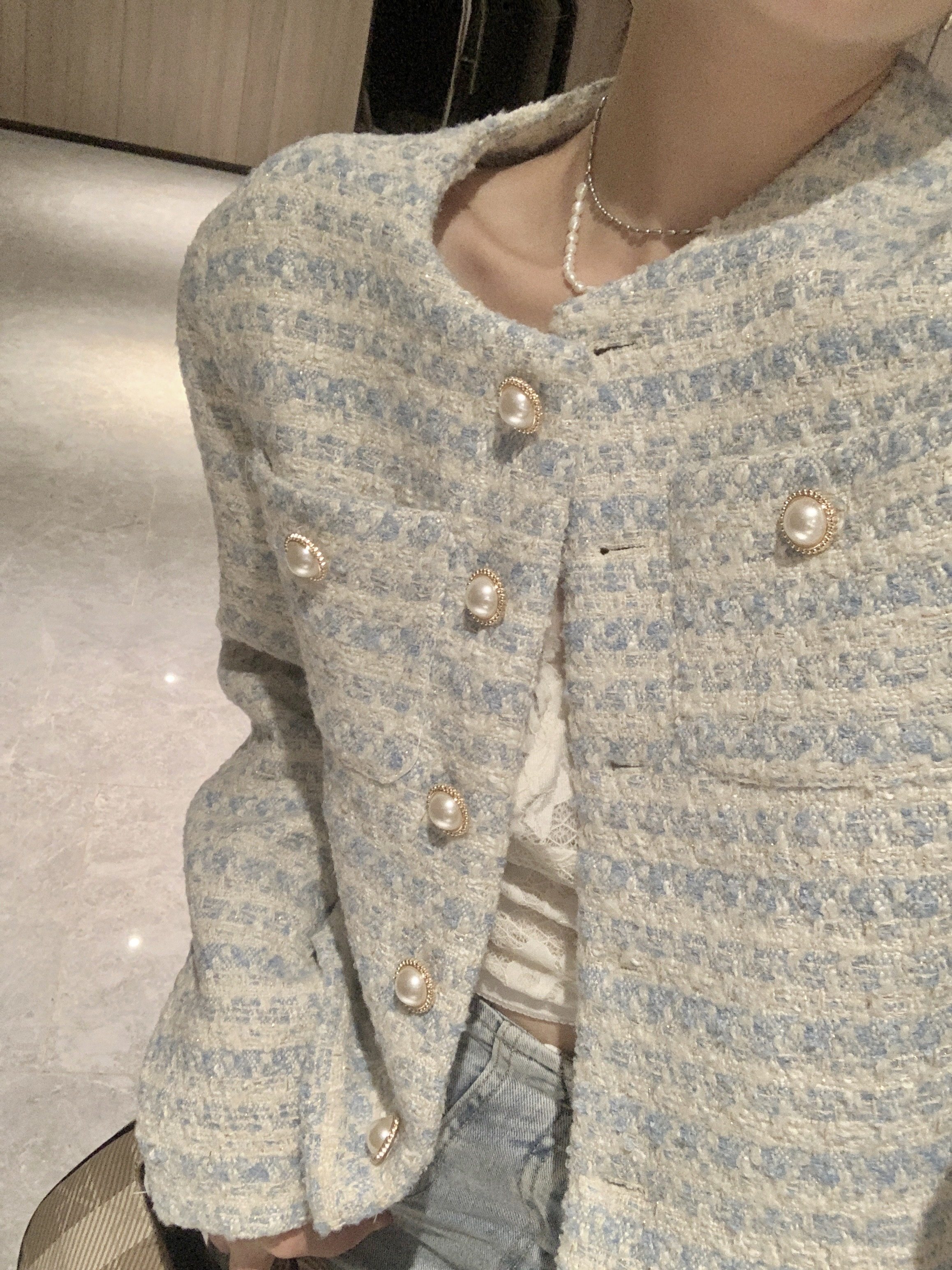 Pearl buckle small fragrance coat women's 2022 spring, autumn and winter new French design sense niche thickened short temperament top