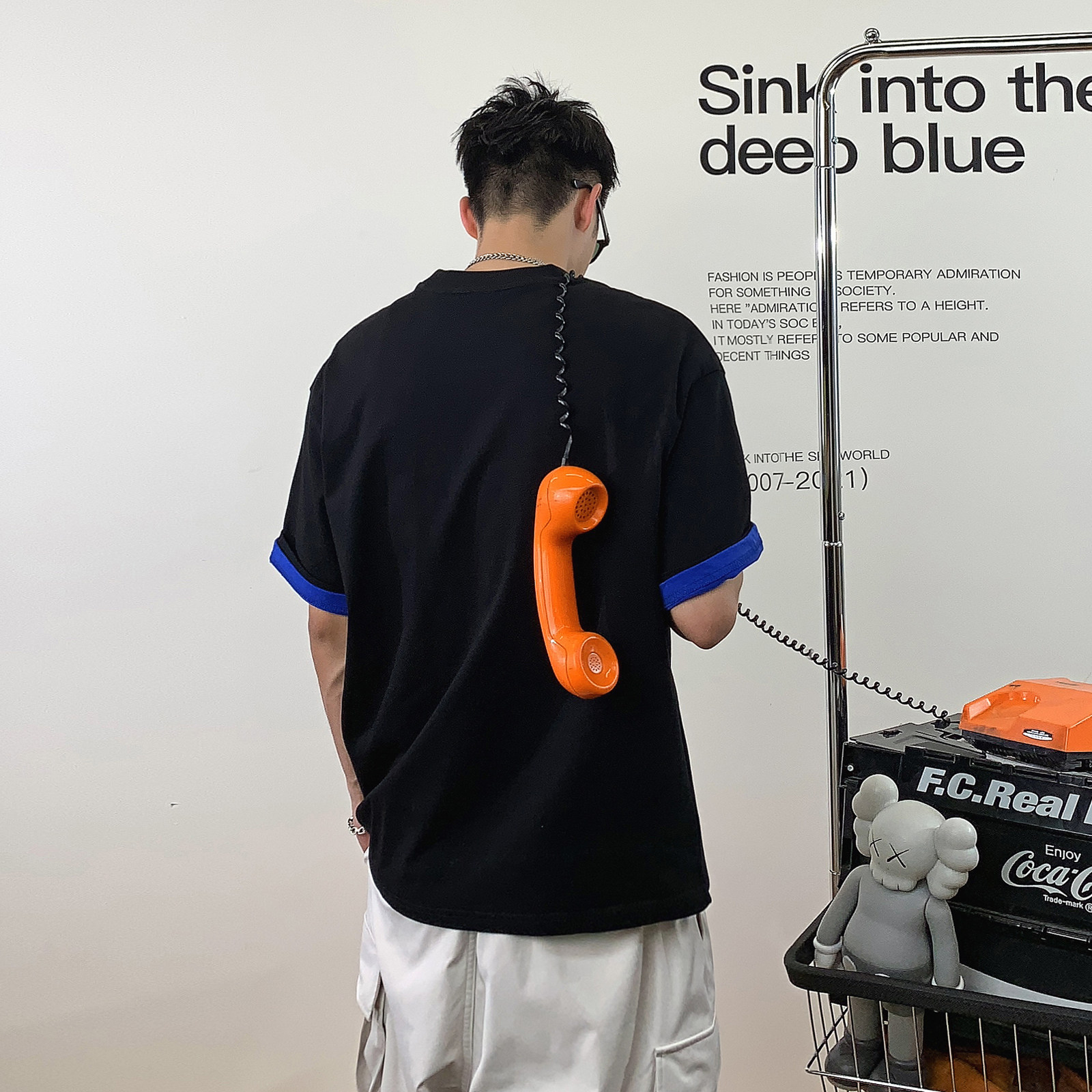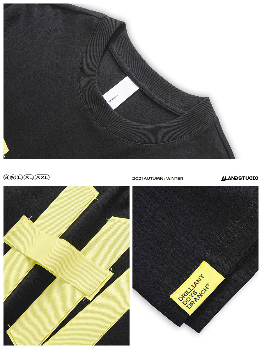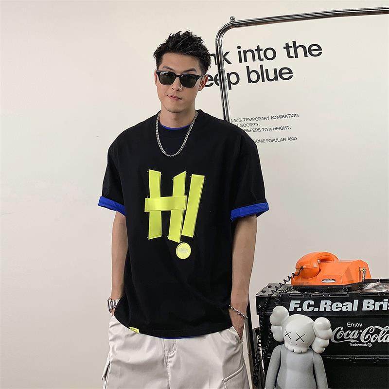 Xu Tailang letter panels short sleeve t-shirt men's ins summer tide brand trend heavy cotton five-quarter sleeve loose top