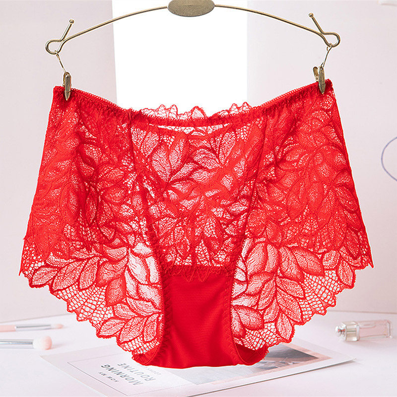 3 dress ~ red lace sexy briefs female 2022 new stylish antibacterial pure cotton crotch breathable no-cut triangular pants