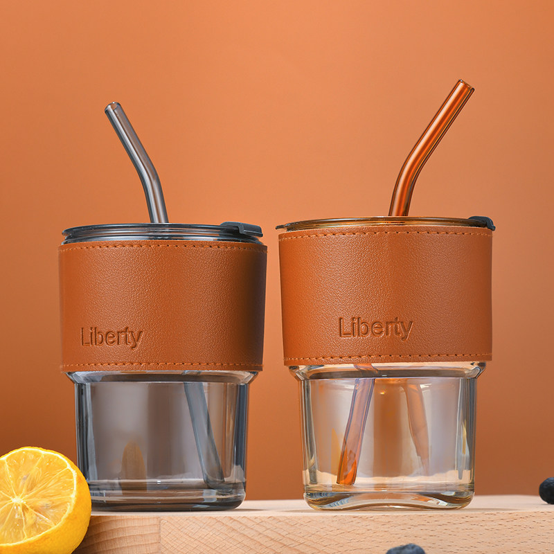 Smoke gray amber smoke gray leather case amber leather case 500ml transparent coke cup bamboo wood cover 450ml transparent coke cup bamboo wood cover