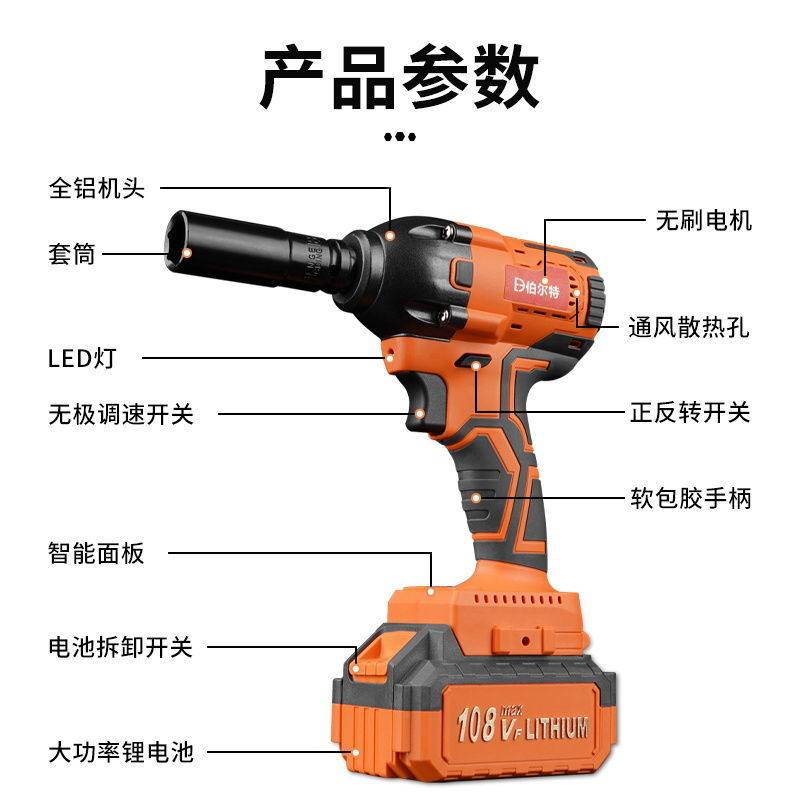 High-power industrial-grade brushless electric drill bare metal 450N high-power industrial-grade brushless wrench bare metal high-power 108vf one electric one charging standard electric drill high-power 88vf electric drill two electric wrenches standard