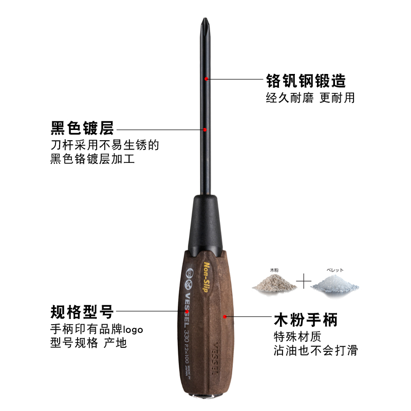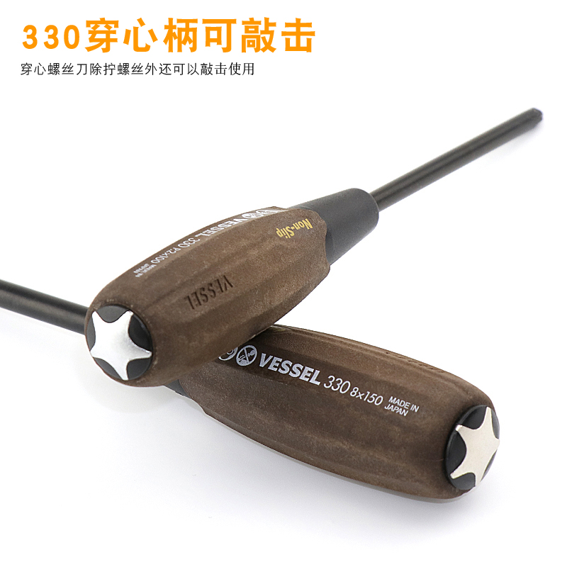 Japan VESSEL Weiwei wood powder screwdriver imported oil-proof anti-skid handle cross word can knock the screwdriver 300