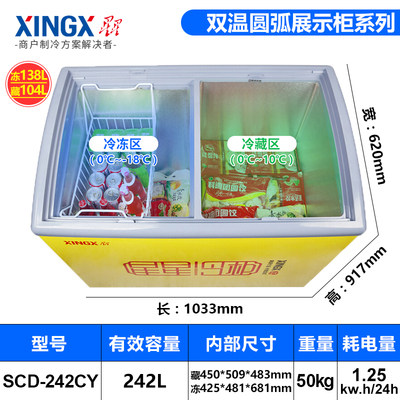 Star Frozen SD SC-246SY Commercial Horizontal Frozen Snow Card Glass Door refrigerator Supermarket Show Cabinet