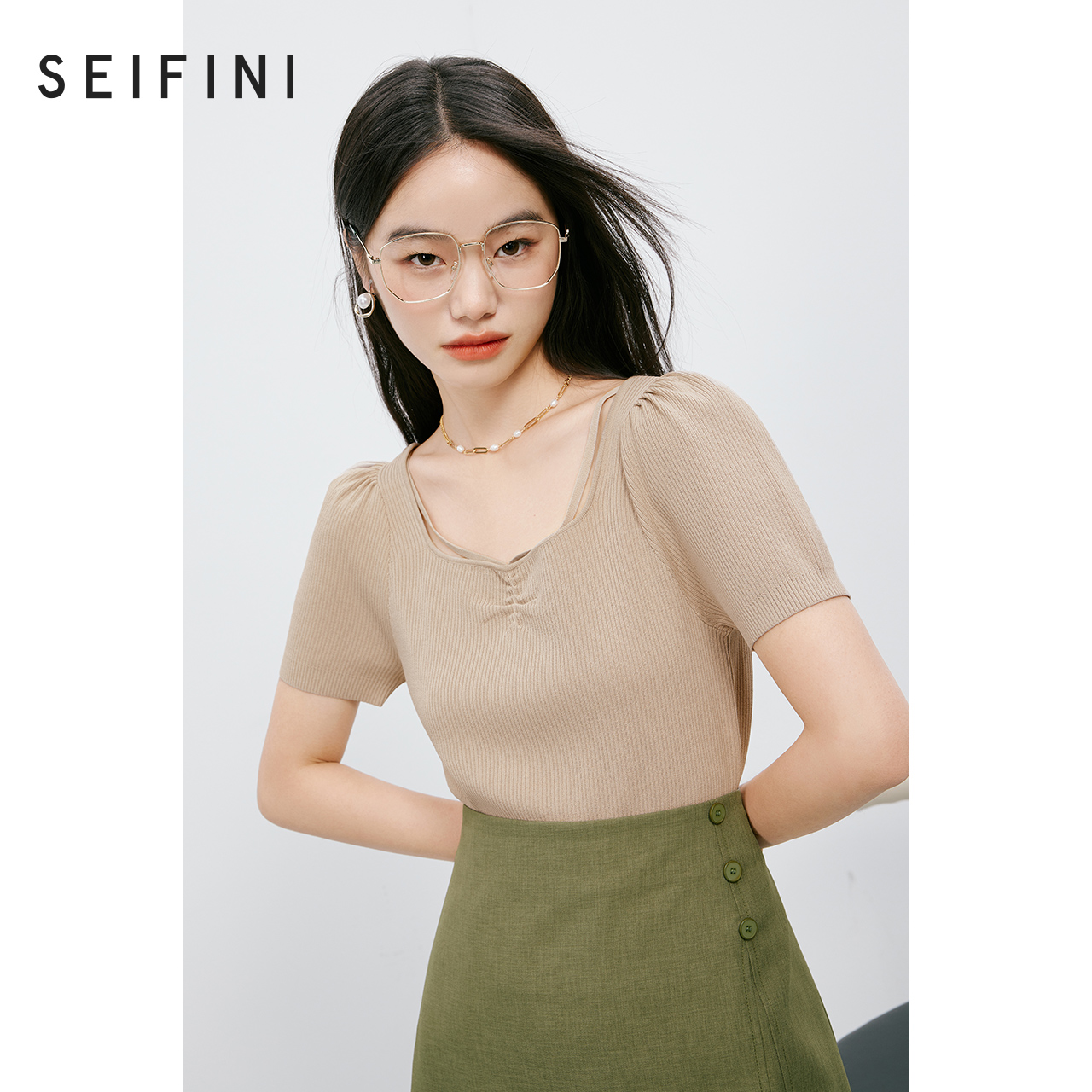 Poetry Verge with its colour square collar short sleeves Knitted Cardigan 2022 Summer New Cardigan Design Sensation 100 lap short blouses