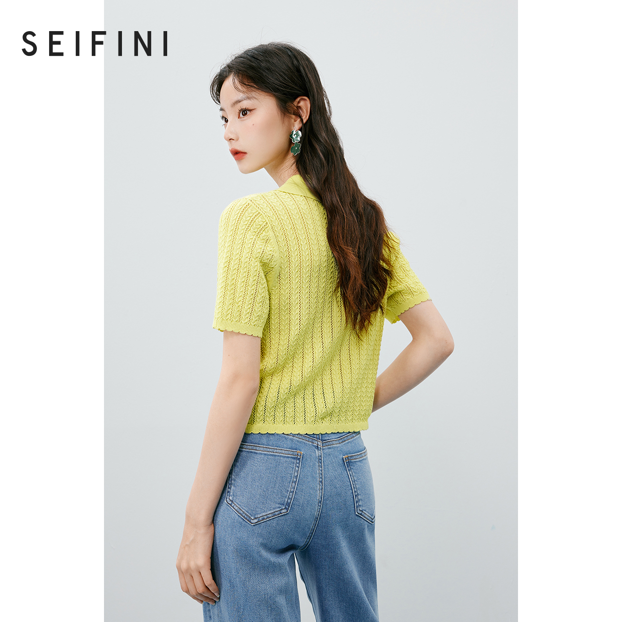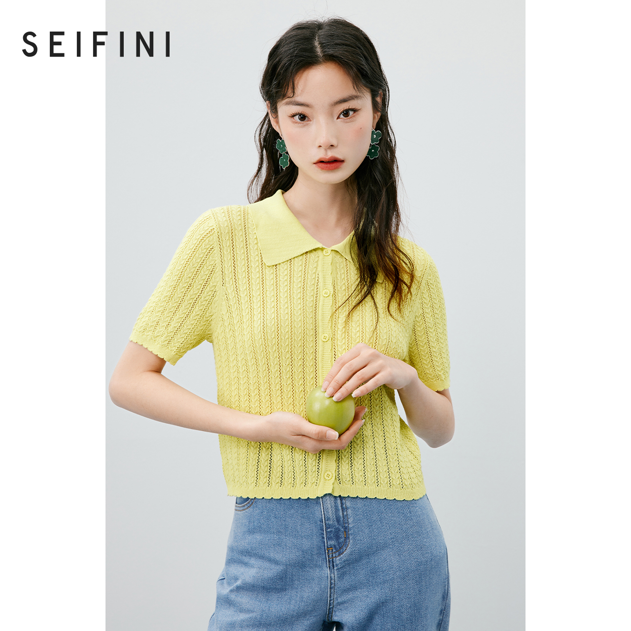 Poetry Fan Le Sunshine Yellow Short Sleeve Knitwear Women 2022 Summer New Light And Breathable Hollowed-out Small Turtlenecks