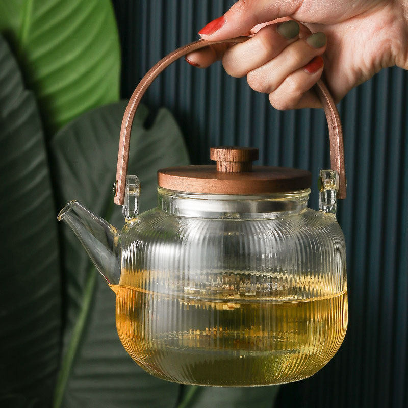 Porcelain wood together with high temperature resistant burning kettle mesh red glass teapot tea cup suit Japanese style afternoon tea wellness bubble teapot