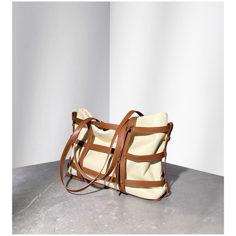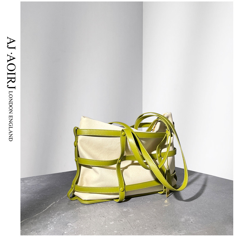 (British AJ AOIRJ) niche design casual tote bag women's leather woven large-capacity canvas shoulder bag