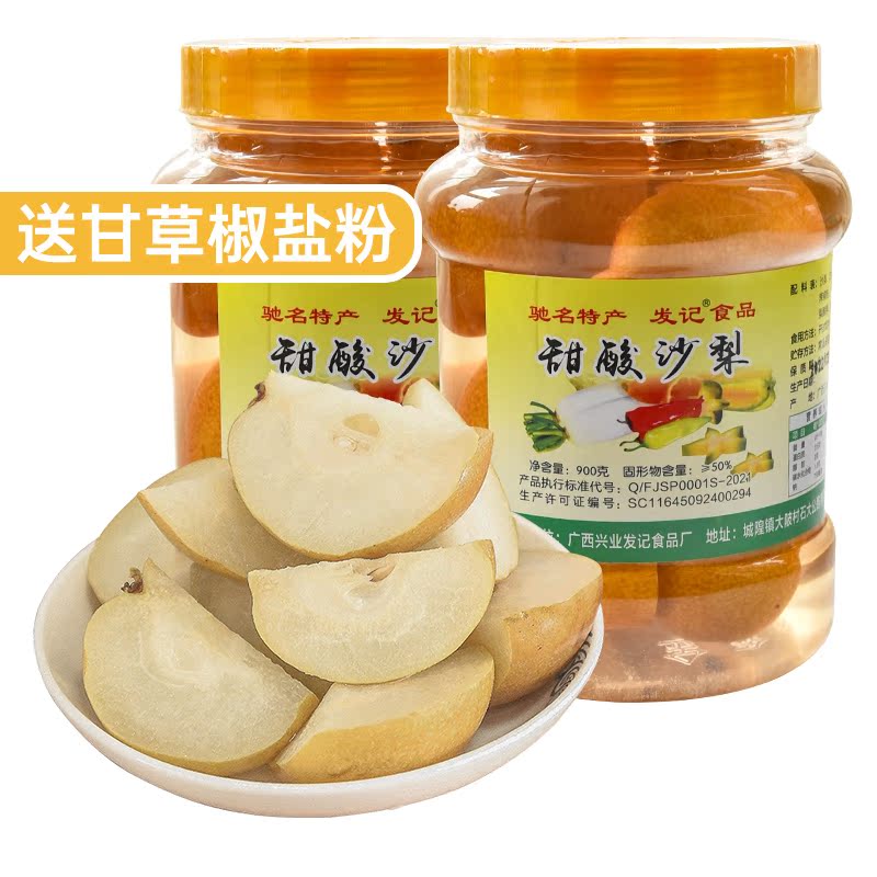 Guangxi sour sour sandy pear hair notes sweet sour sand pear 900g * 2 bottles of jade linen acid wild cured fruit City god acid stock